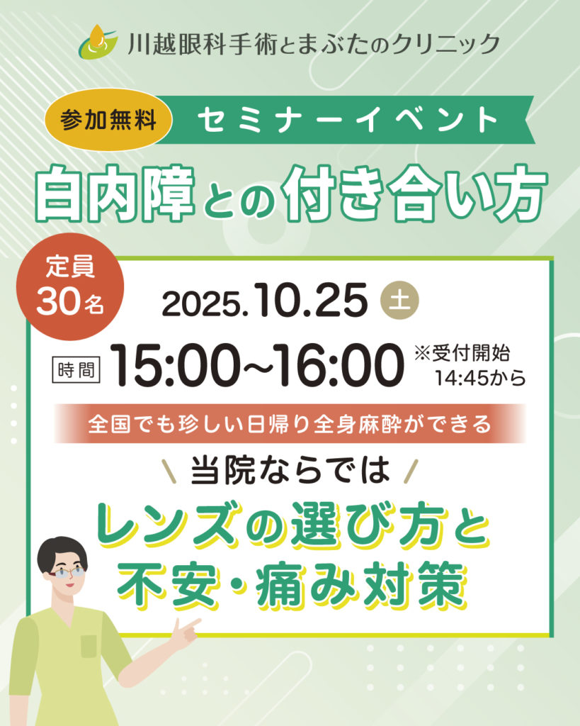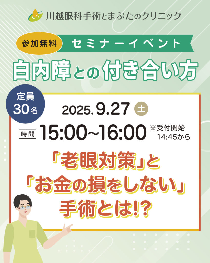 無料セミナー!白内障手術説明会~川越眼科手術とまぶたのクリニックにて