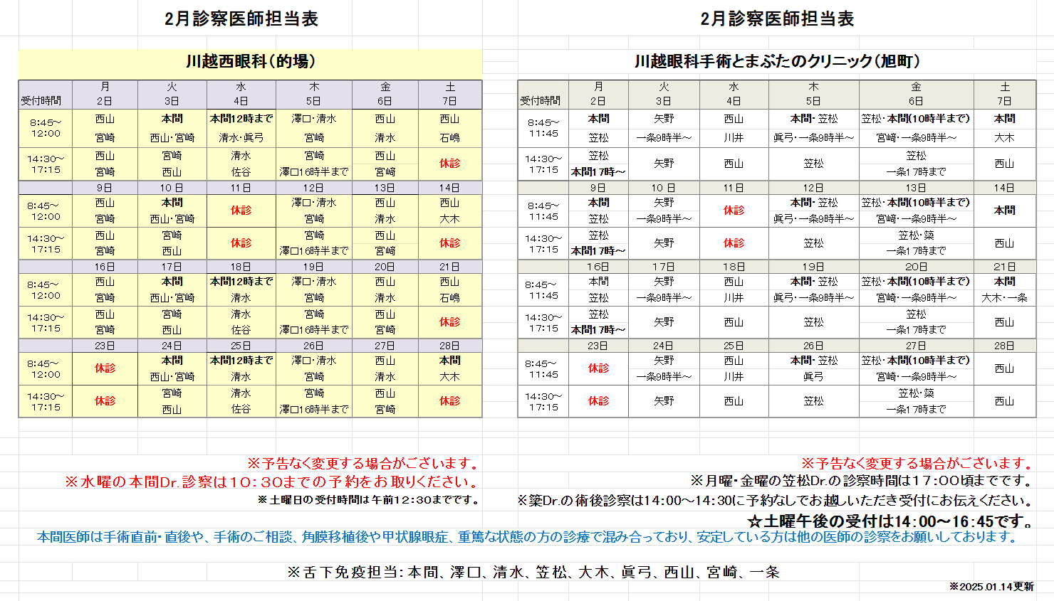 2月医師担当表
