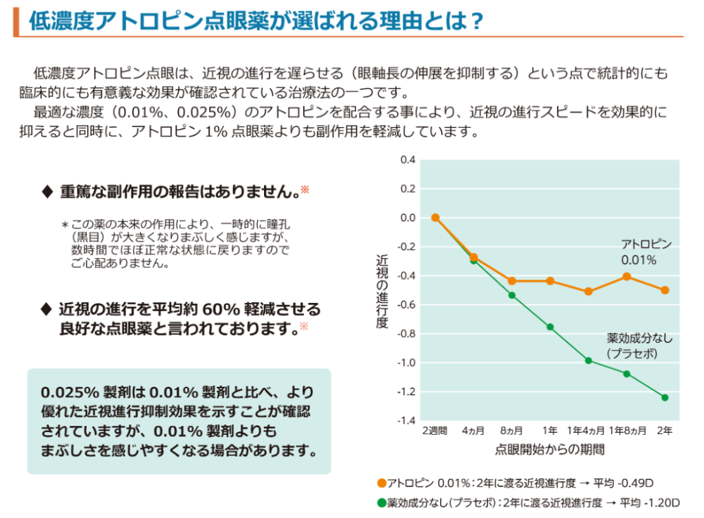 より高い近視進行抑制効果が期待されている点眼薬です。ご興味のある方は、お気軽にスタッフまでお声がけください。